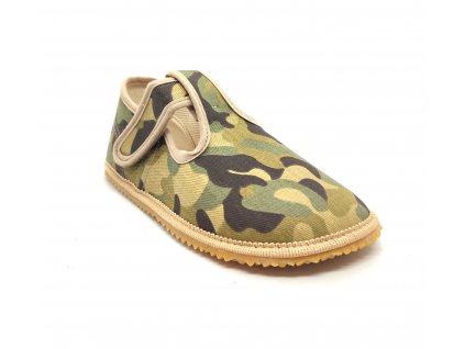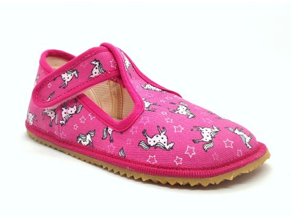 Dětská domácí obuv s praktickou ochranou špičky v podobě gumového okopu. Vyrobené z prodyšných materiálů, s tenkou ohebnou podrážkou a rovnou koženou stélkou. Bez lepidel.