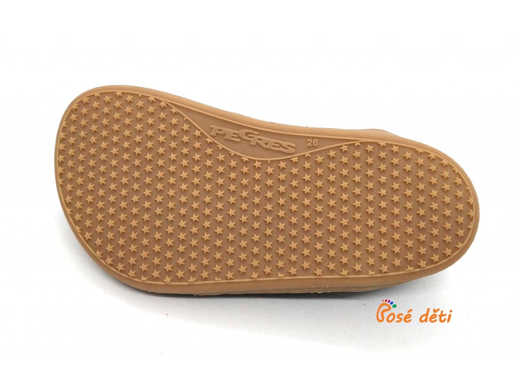 Barefoot Pegres se pyšní velkým prostorem pro dětské prstíky. Nejen dominantním palečkům a úzkým patám v nich bude skvěle. Botičky jsou velmi měkké a mimořádně ohebné. Vyrobené z kombinace síťoviny, lycry a kůže. Utahování pomocí gumové tkaničky s brzdičkou.