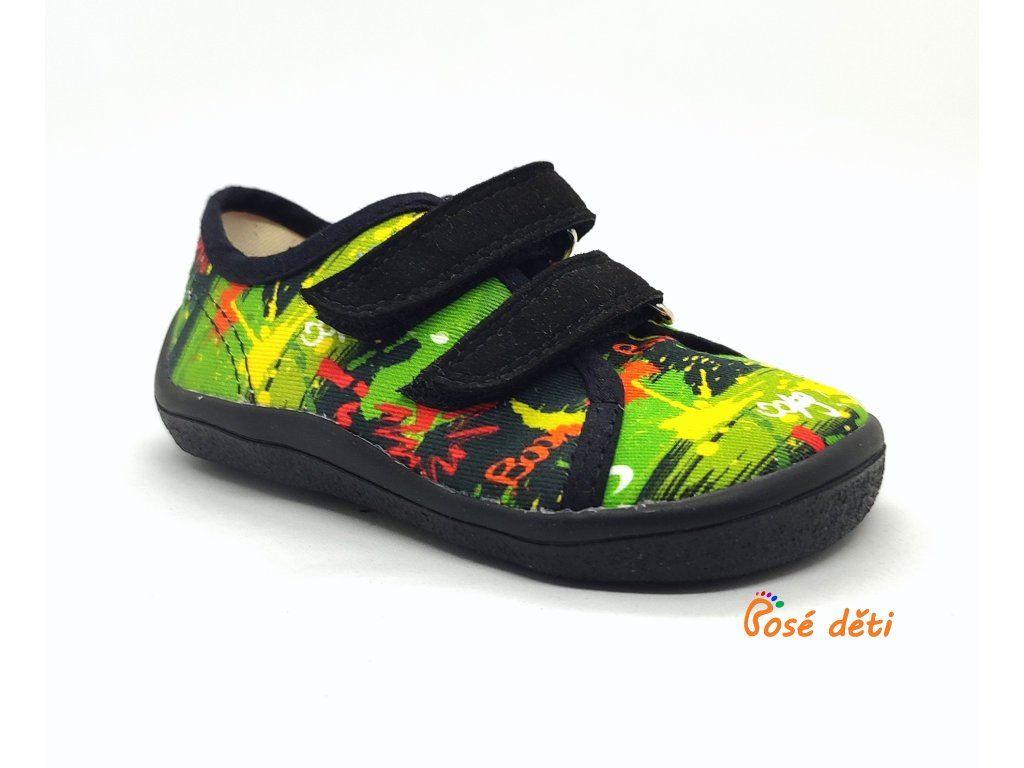 Lehká plátěná dětská obuv novějšího střihu "BFN" (nižší v nártu a užší kolem kotníku, než klasická BF řada značky Beda).