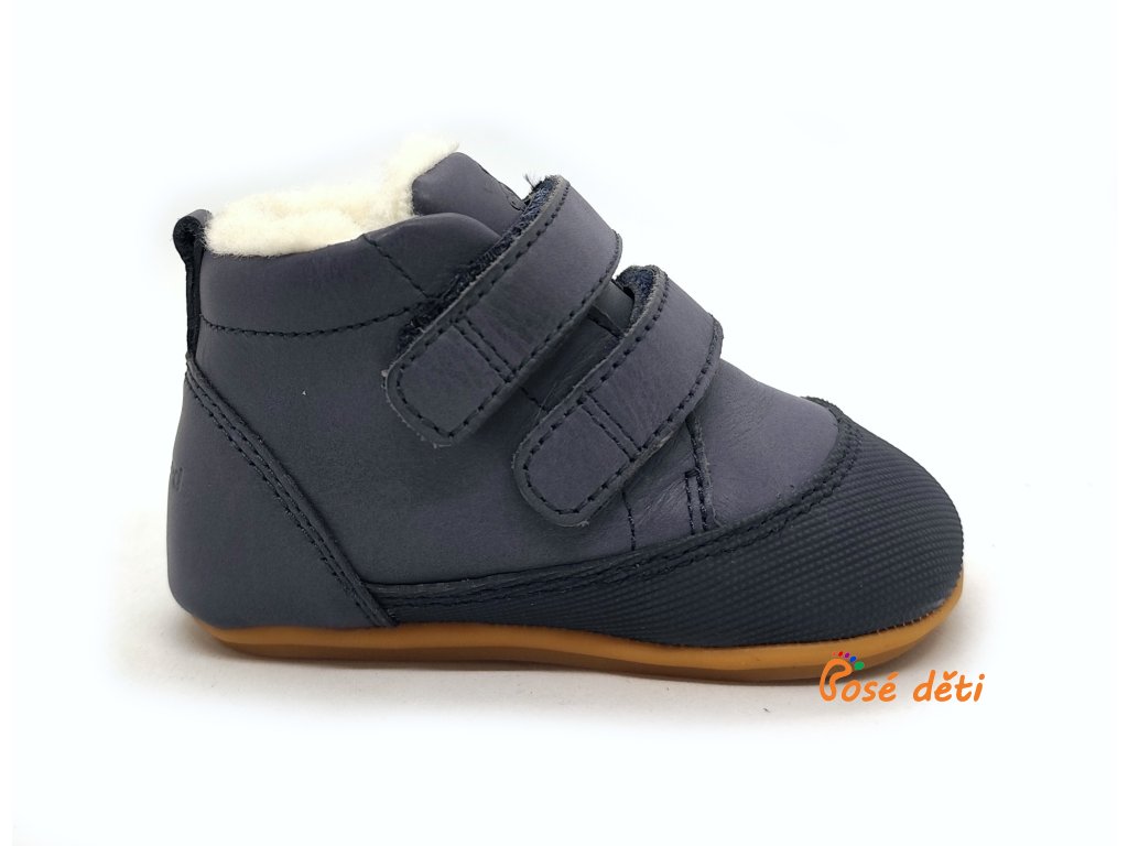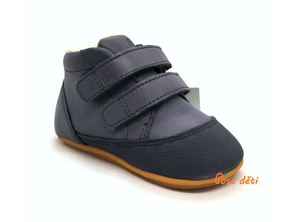 Měkké kožené boty anatomického tvaru, s gumovou podrážkou a praktickým okopem. Teplá podšívka, vyjímatelná stélka. Vhodné pro začínající chodce.