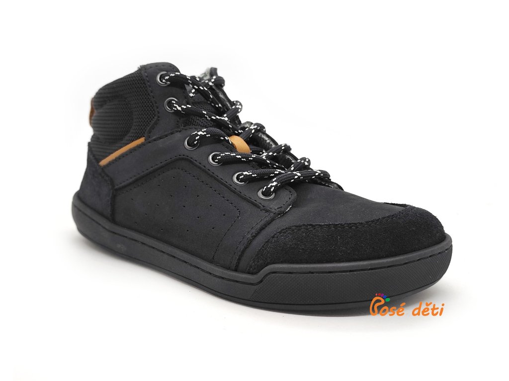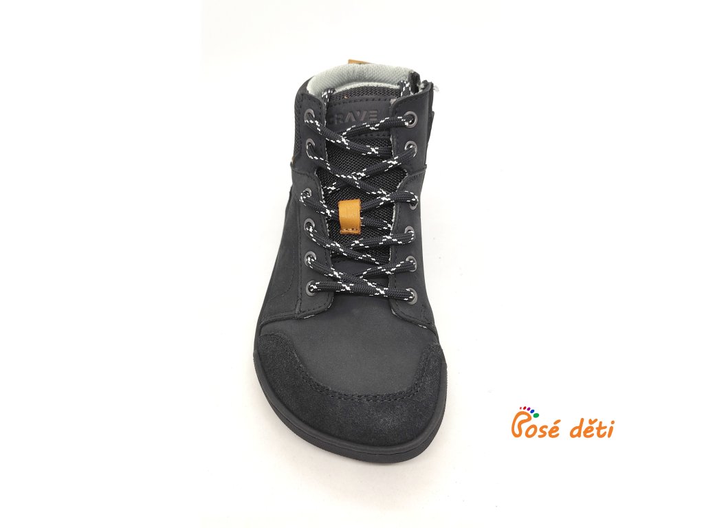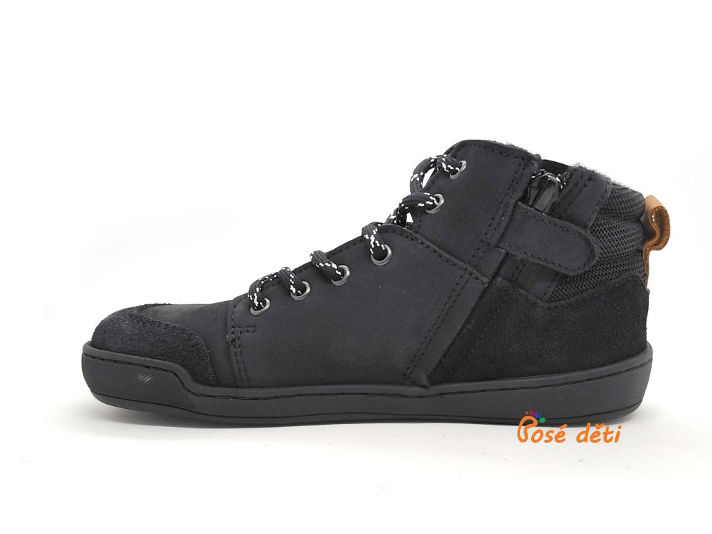 Kožené barefoot celoročky vyššího střihu, s velmi prostornou špičkou. Zapínání na tkaničky, boční zip pro pohodlnější a rychlejší obouvání.