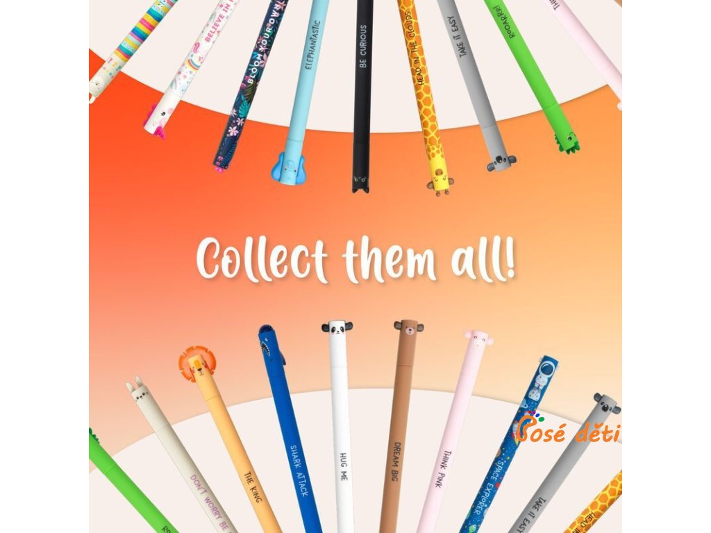 Gumovatelné pero v populárních designech s roztomilými detaily a nápisy. Vyměnitelná náplň.