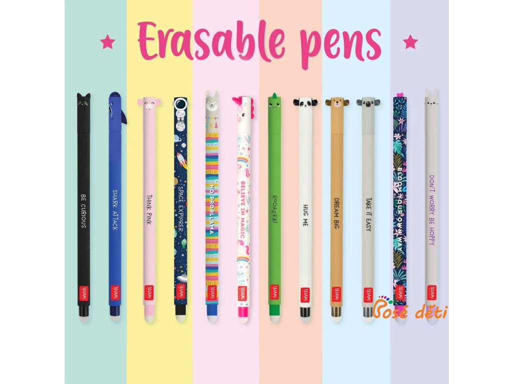 Gumovatelné pero v populárních designech s roztomilými detaily a nápisy. Vyměnitelná náplň.