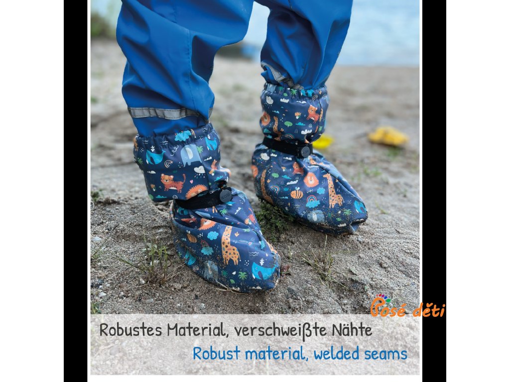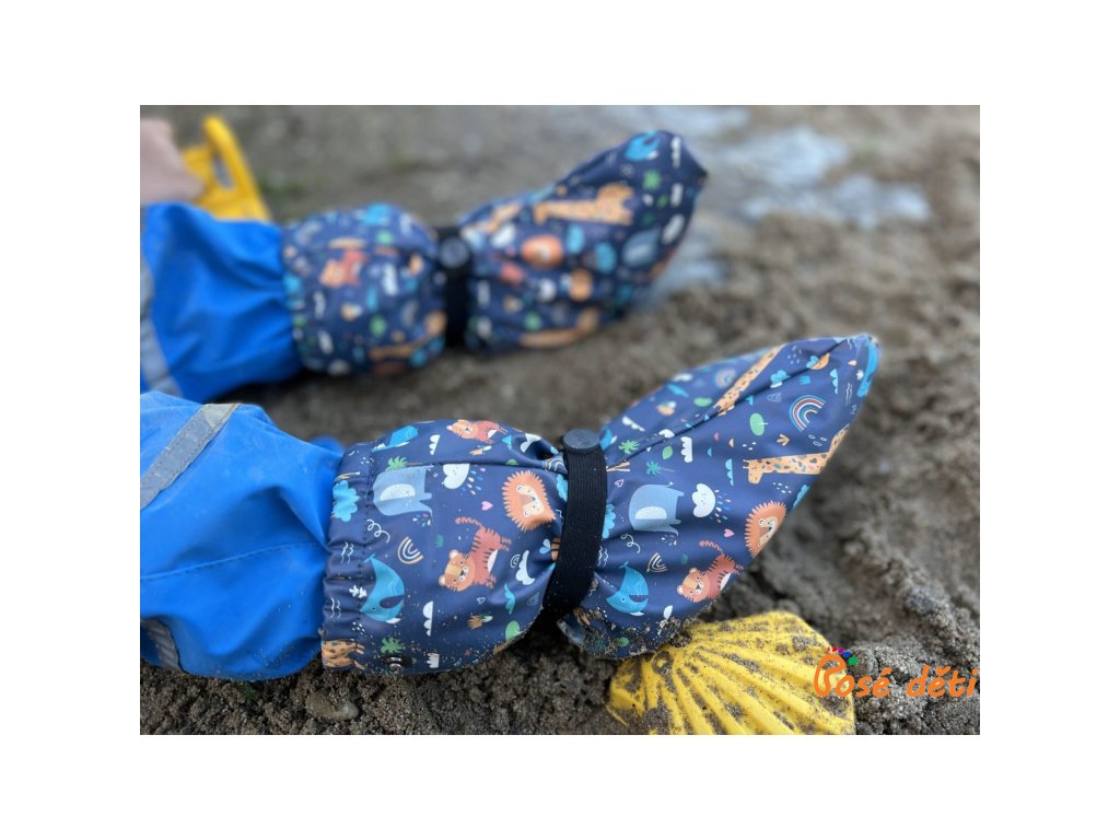Návleky z pogumovaného materiálu s flísovou podšívkou sloužící jako ochrana před vlhkem a chladem. Podlepené švy zajišťují 100% odolnost proti vodě a větru.