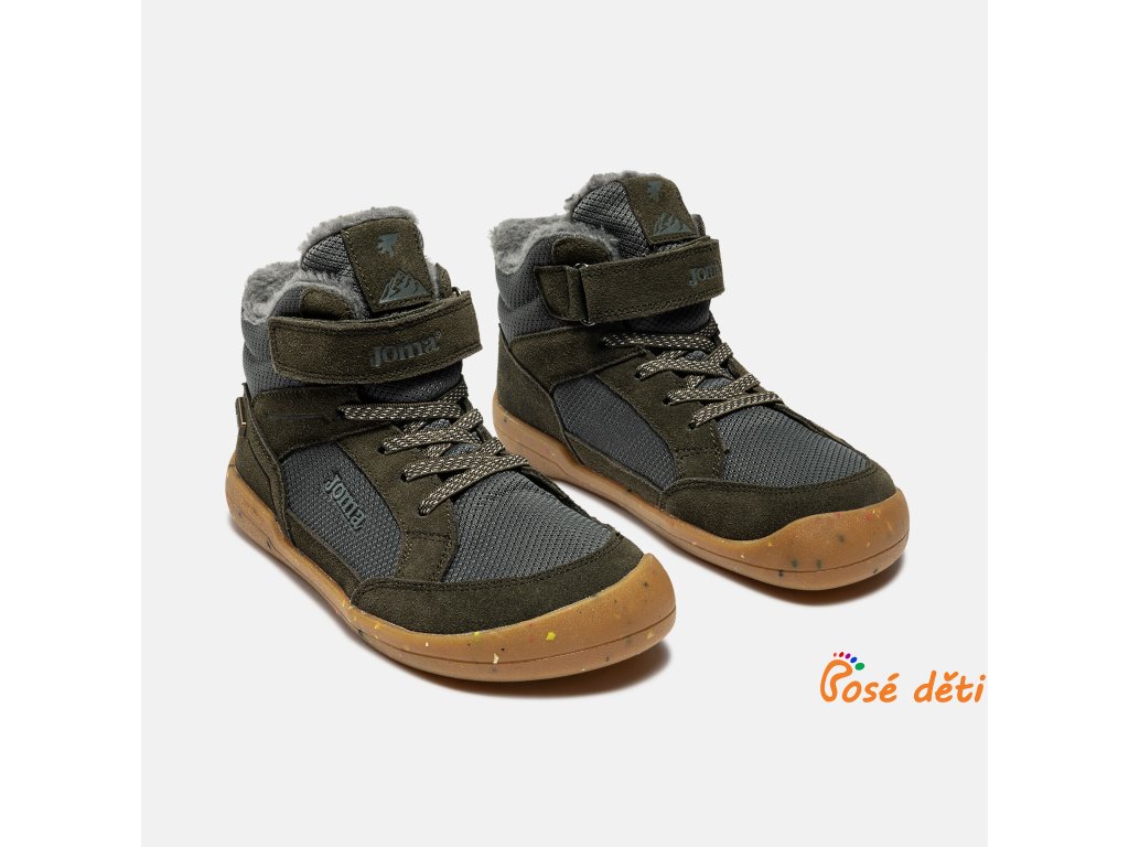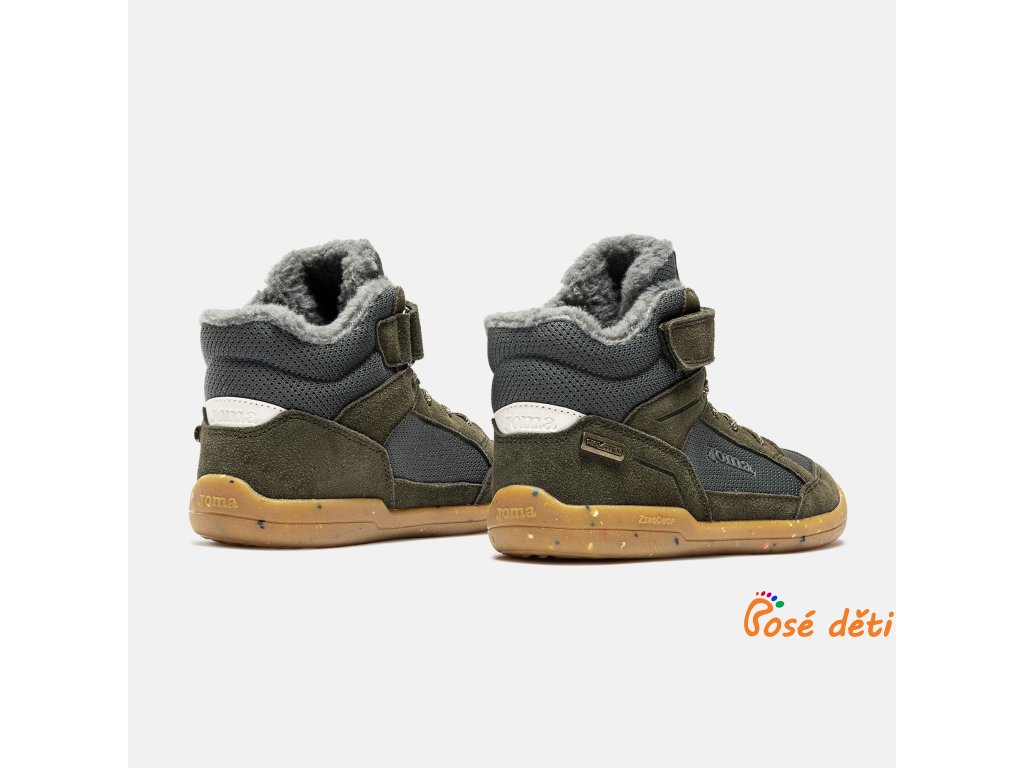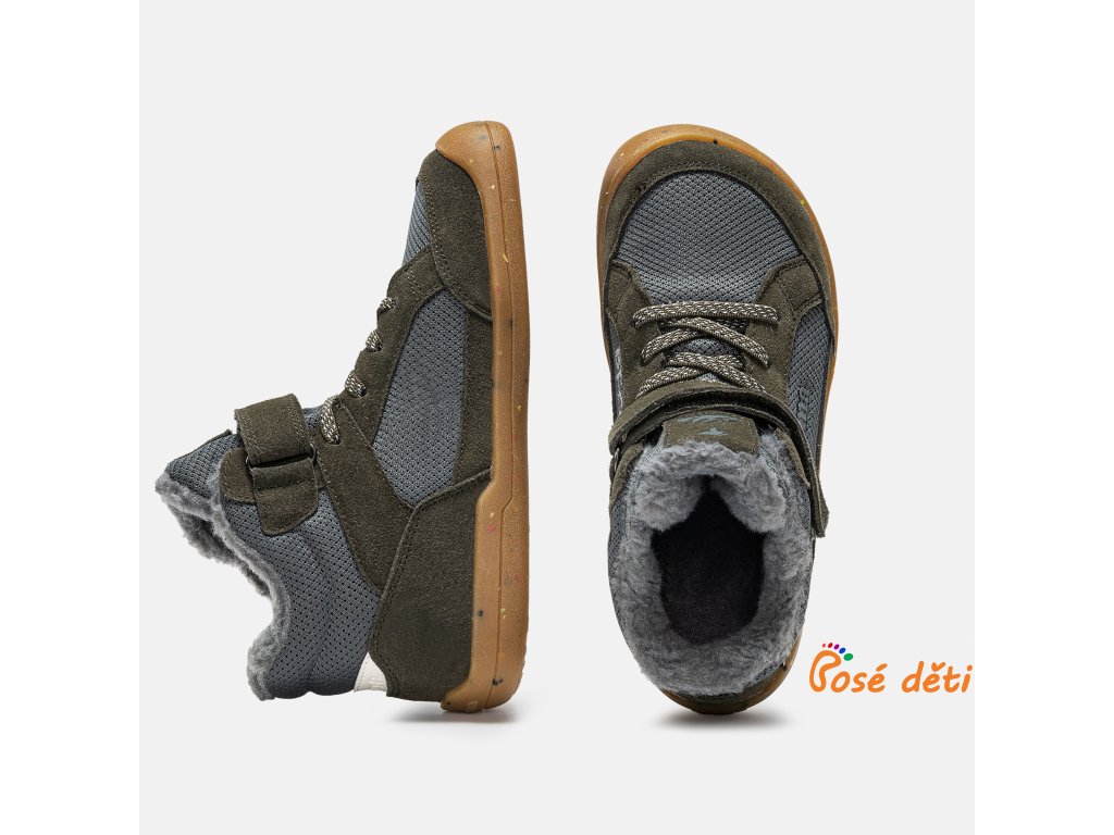 Barefoot obuv s membránou z recyklované kůže v moderním sportovním vzhledu. Se zateplením v horní části a na stélce.