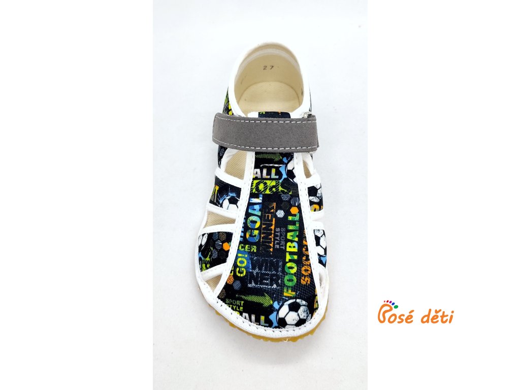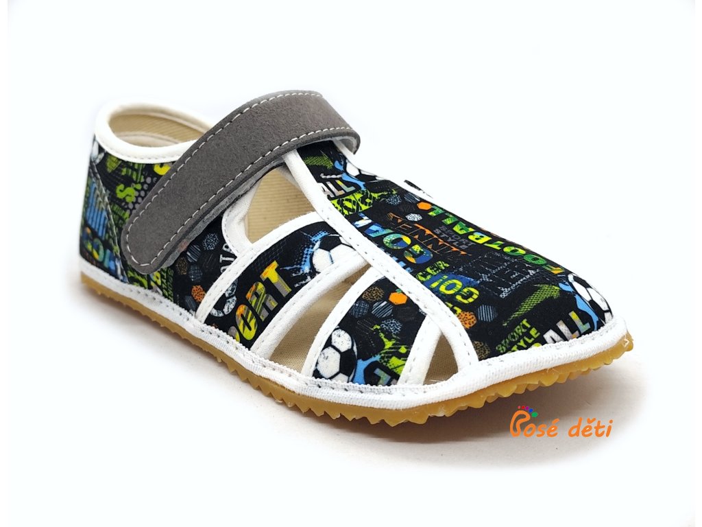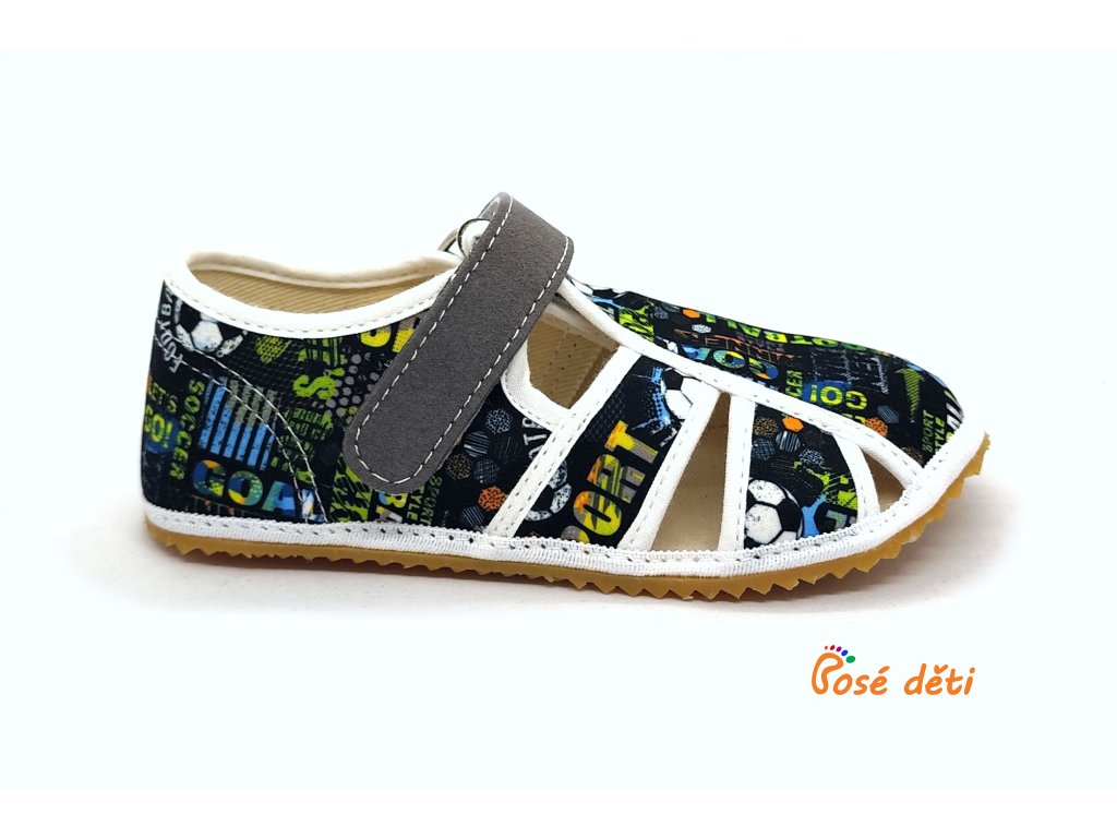Textilní přezůvky české výroby. Zapínání na suchý zip, anatomický tvar, rovná stélka bez podpory klenby.