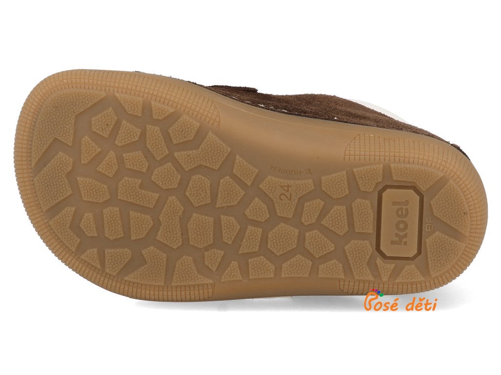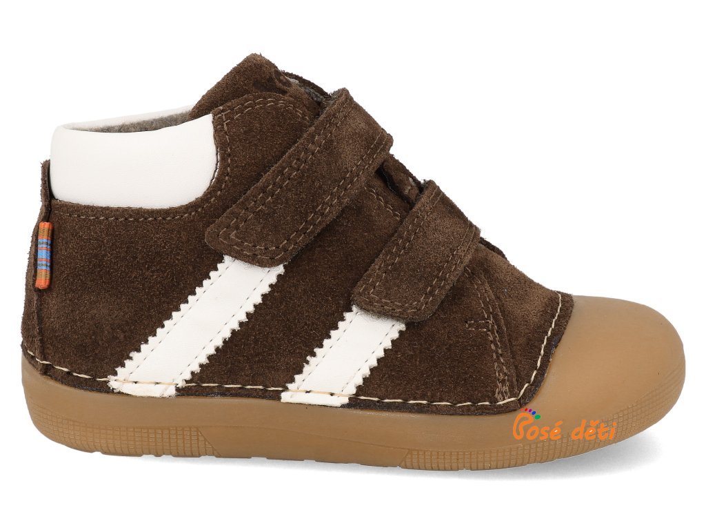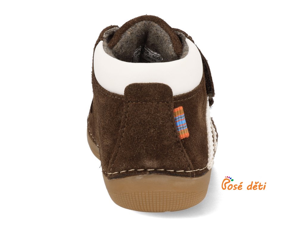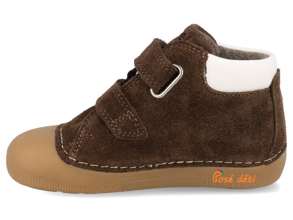 Obuv má nulový drop, anatomicky tvarovanou špici a je velmi lehká a měkká, vhodná pro nejmenší děti. Svršek z kvalitního nubuku v bio kvalitě, gumová špice pro vysokou odolnost. Měkká pata.