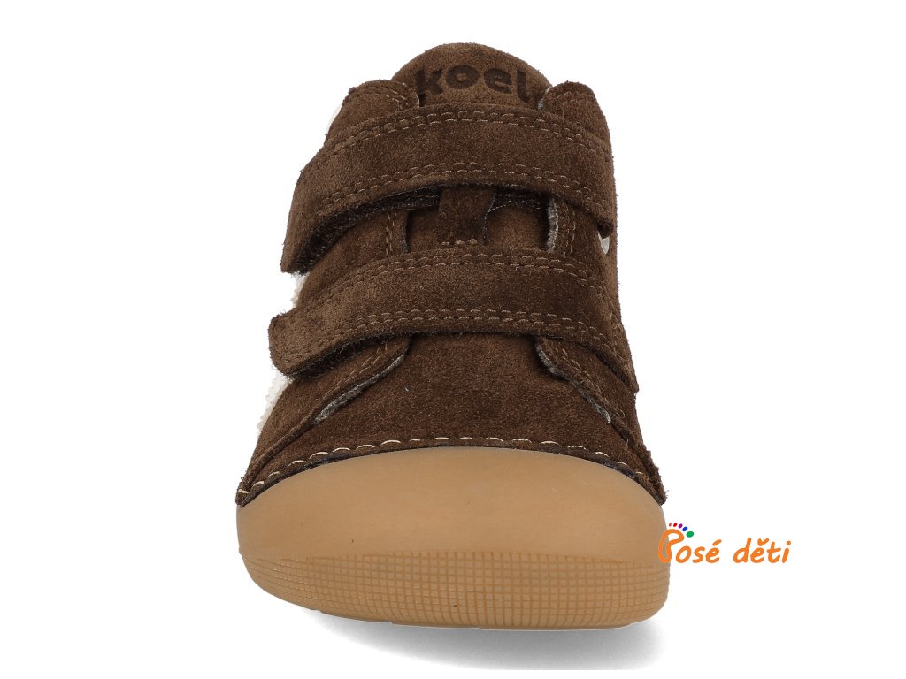 Zimní kožená obuv s teplou vlněnou podšívkou pro začínající chodce. Vhodná pro užší patu a široké prsty. Na měkké a flexibilní 5mm podešvi Baby bare z přírodní gumy.
