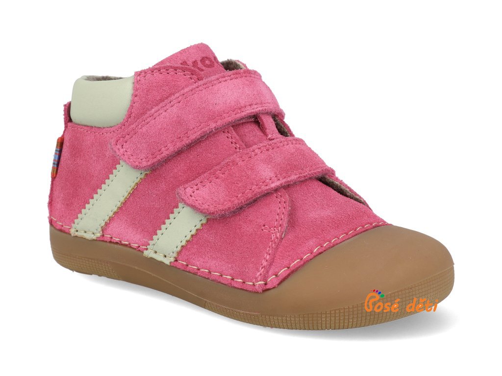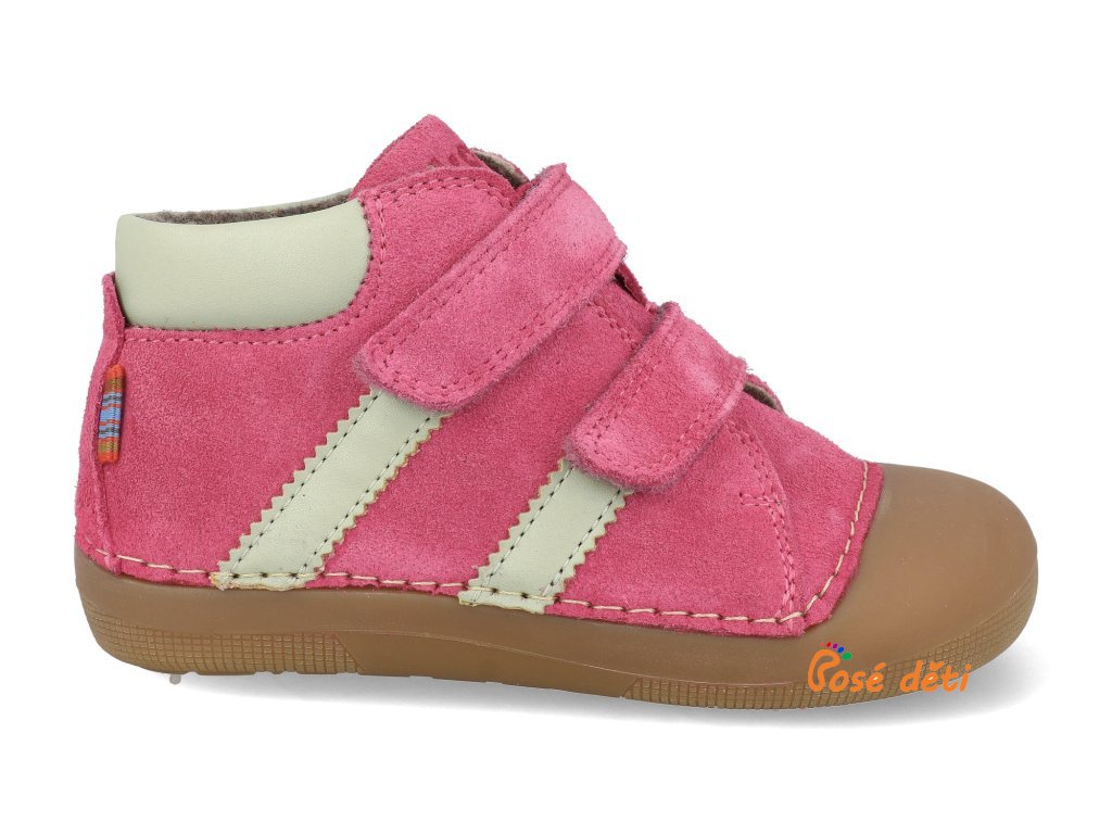 Obuv má nulový drop, anatomicky tvarovanou špici a je velmi lehká a měkká, vhodná pro nejmenší děti. Svršek z kvalitního nubuku v bio kvalitě, gumová špice pro vysokou odolnost. Měkká pata.