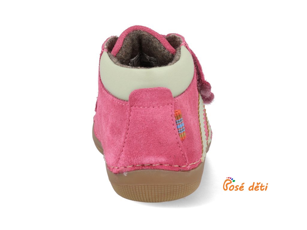 Zimní kožená obuv s teplou vlněnou podšívkou pro začínající chodce. Vhodná pro užší patu a široké prsty. Na měkké a flexibilní 5mm podešvi Baby bare z přírodní gumy.