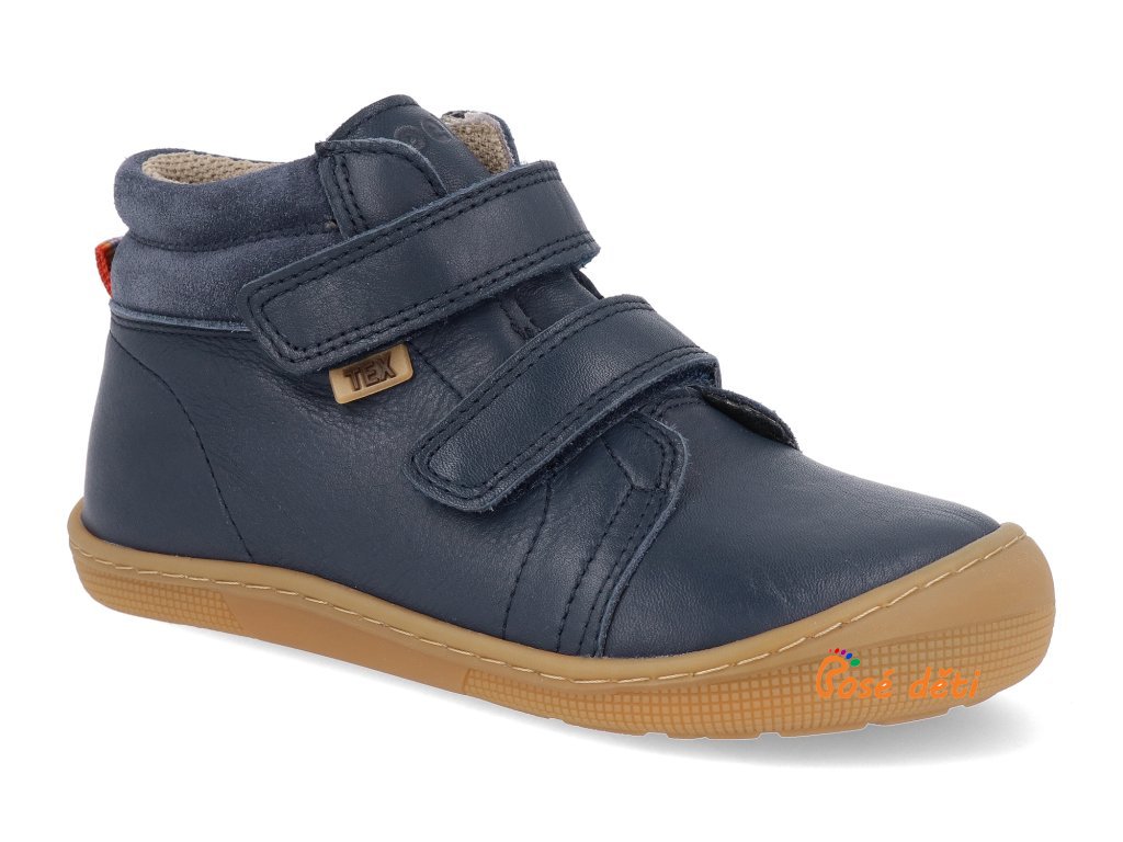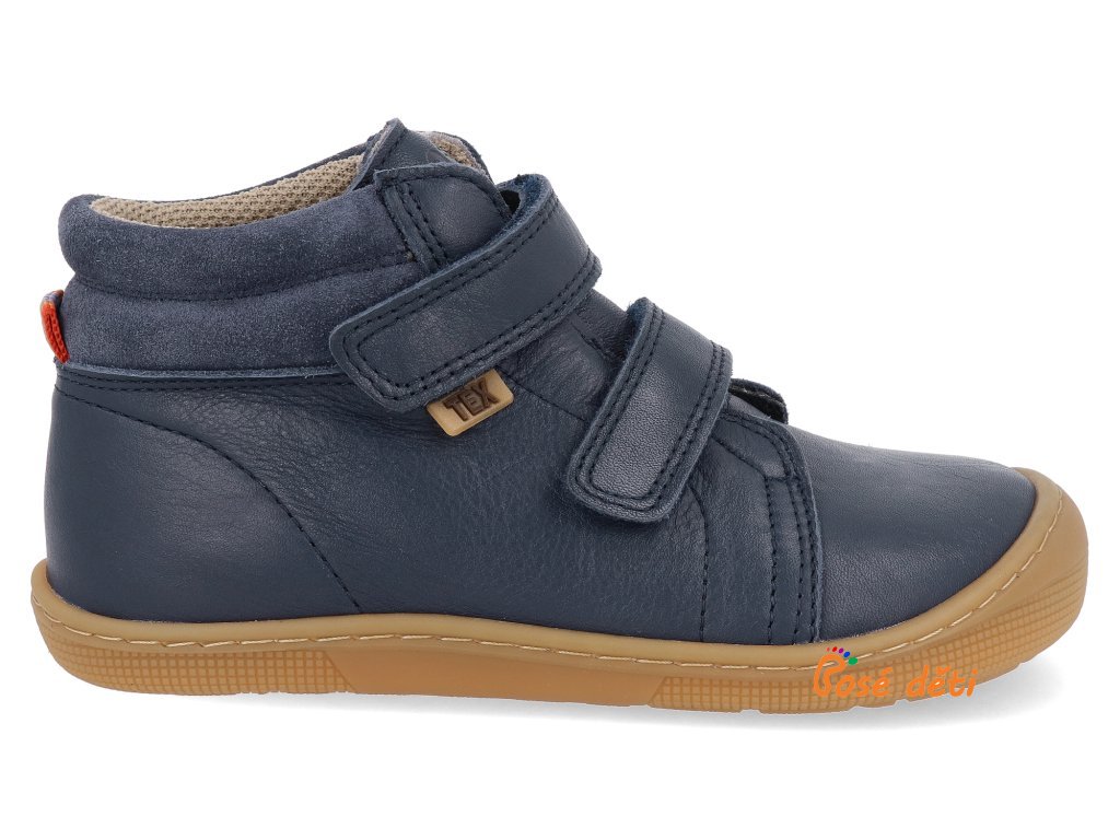 Vyšší barefoot boty pro děti s textilní podšívkou. Membrána TEX pro vyšší odolnost i ve vlhkém počasí.