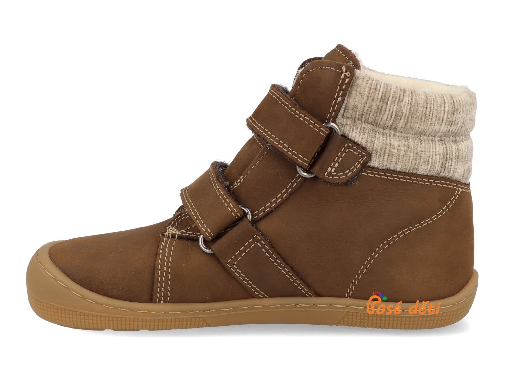 Zimní barefoot boty pro děti s teplou podšívkou ze 100% vlny. Membrána pro vyšší odolnost i ve vlhkém počasí, všitý jazyk proti sněhu.