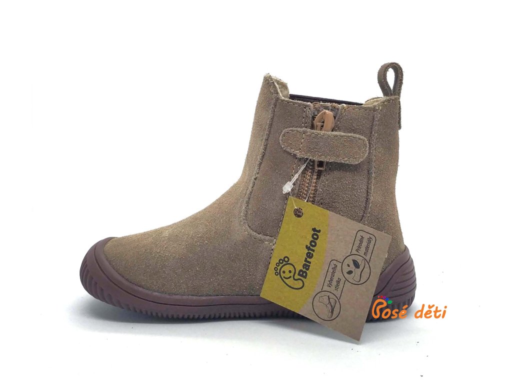 Dětské celoroční kožené boty vyššího střihu s mírně teplejší podšívkou, se zapínáním na boční zip. Praktický gumový okop. Vyjímatelné rovné stélky.