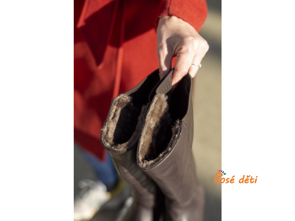 Velmi elegantní a módní, stylový kousek, který rozhodně nevypadá jako barefoot mainstream, kdy se navíc dá i vnitřní kožíšek ohrnout a ještě více tak jako kožešinka kolem lýtka zviditelnit. Sedí na užší až průměrné nohy, ne na všechna širší lýtka.